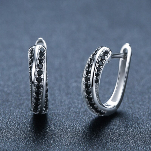 Atraktivni srebrni uhani, izjemnega modernega dizajna, katere krasijo manjši, mistični, črni kristali CZ. Uhani so več kot primerni tako za dnevno eleganco, posebne priložnosti, lahko pa so tudi izjemno lepo darilo.