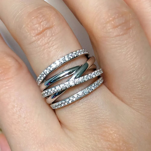 Zelo lep prstan, primeren za vsakodnevne in posebne priložnosti. Srebrnega videza z dodani belimi kristali Cubic Zirconia. Primerno za darilo!!