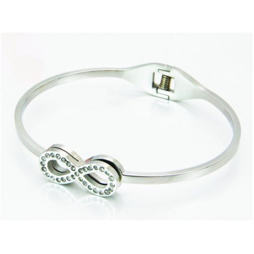 Oznake: zapestnica, nerjaveče jeklo, kirurško jeklo, obročasta zapestnica, kristali CZ, infinity, večnost