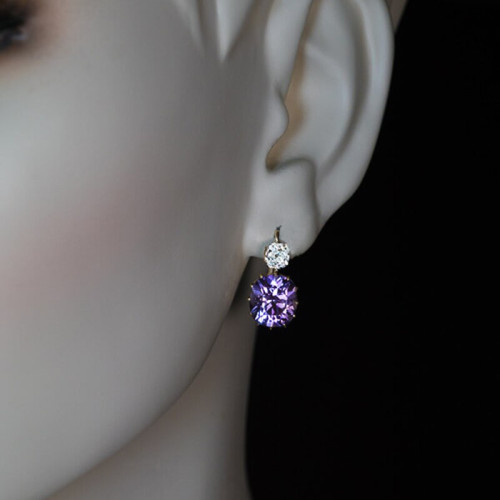 Krasni srebrni uhani z vijoličnim kristalom Cubic Zirconia. Čudoviti, opazni že na daleč.