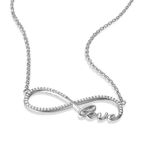 Elegantna srebrna ogrlica s kristali Cubic Zirconia. Napis Love. Primerna za domačo rabo ali posebne priložnosti!