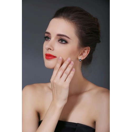Oznake: srebrni uhani, kristali CZ, kombinacija črnih in belih kristalov