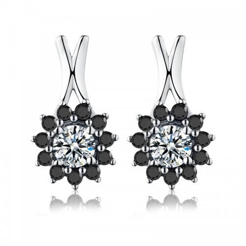 Čarobni srebrni uhani, s prekrasnim rožastim dizajnom, katerega bogatijo izjemno zapleteni črni kristali CZ, najvišjega kakovostnega razreda v kombinaciji z manjšimi belimi kristali CZ. Prekrasni!