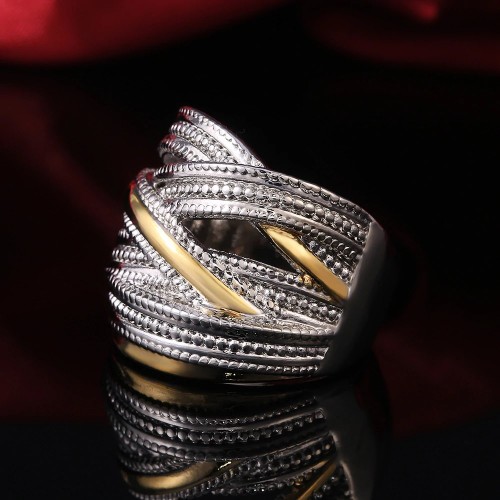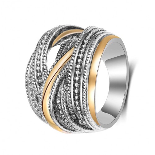 Izjemno lep, širok prstan čudovitega modernega prepletujočega dizajna. Prstan je zelo razkošen in širok ter krasno stoji na prstu. Tako pravljičen, da ne boste mogli odlepiti pogleda od njega.