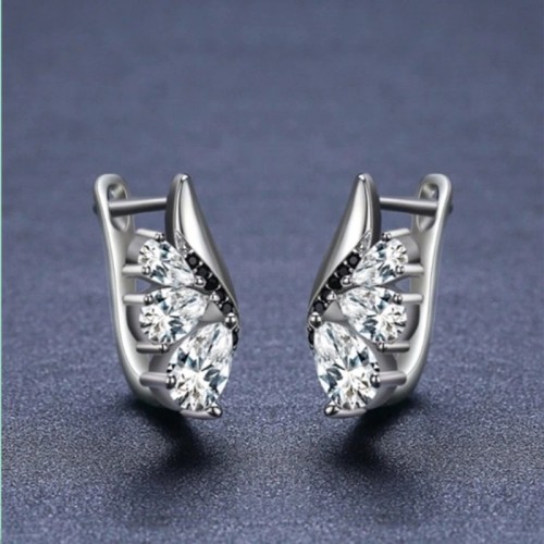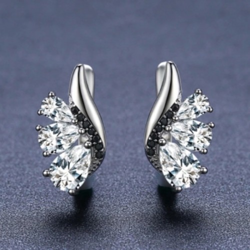 Prelestni srebrni uhani s čudovitimi belimi kristali CZ najvišjega kakovostnega razreda, kateri se ponašajo z dizajnom večne elegance. Mali detajl, skrit v uhanih pa so tudi sijoči črni kristali CZ.