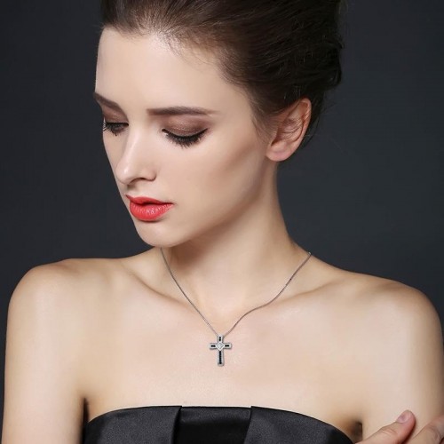 Oznake: srebrn obesek, kristali CZ, obesek križ, blackmiracle